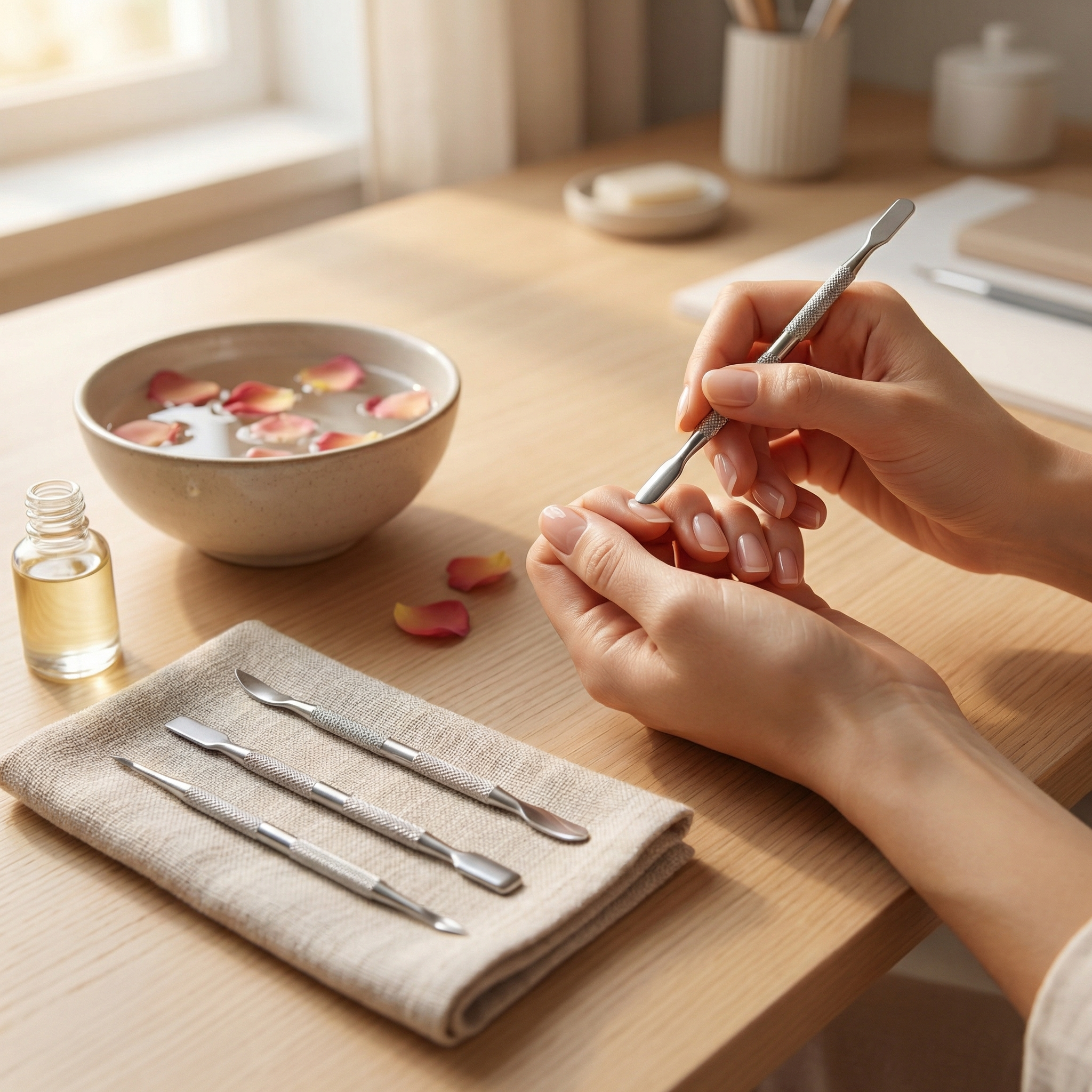 Die ergonomisch geformten Tools unterstützen das sanfte Zurückschieben der Nagelhaut und helfen dabei, die Nageloberfläche sauber vorzubereiten. Ideal als Vorbereitungsschritt für eine gepflegt wirkende Maniküre und ein gleichmäßiges Finish.